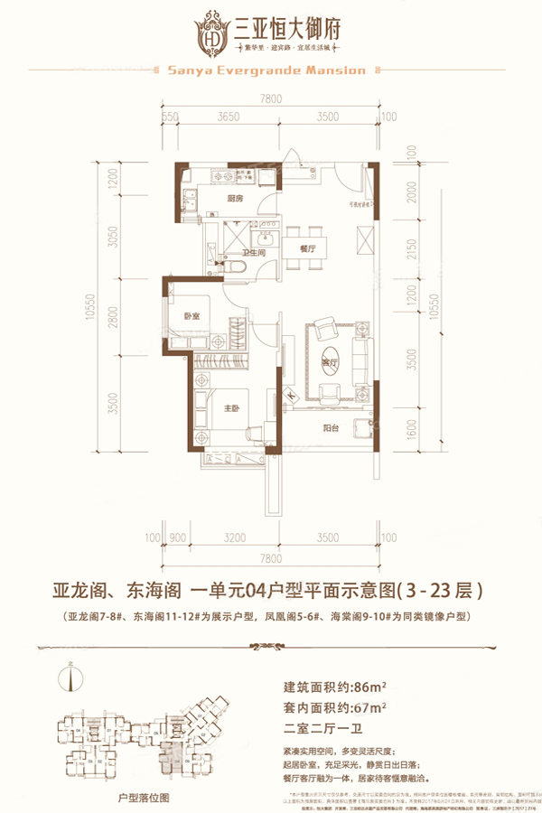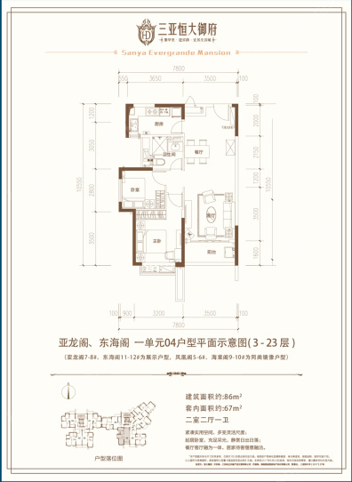 三亚恒大御府在售复式户型有35-58平1房、81平3房 2020-08-17