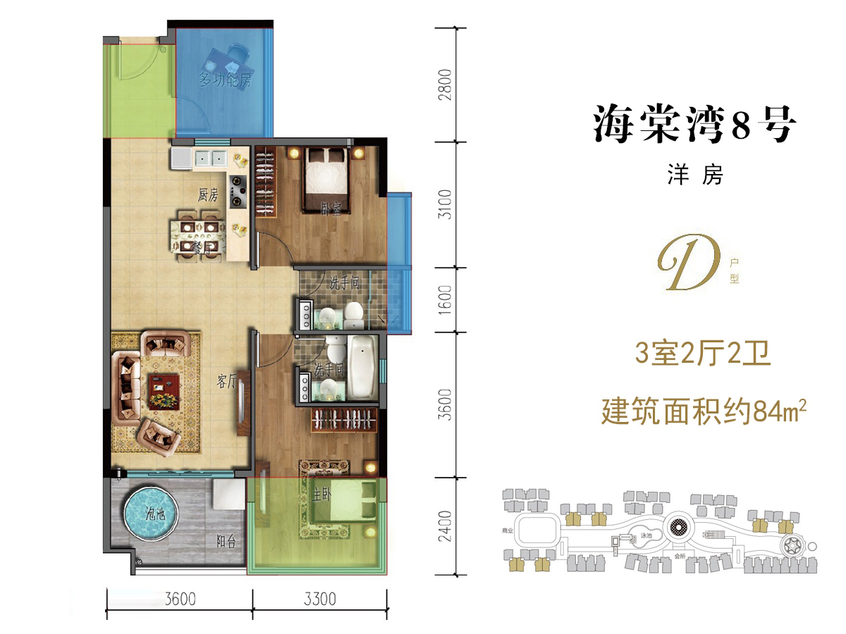 海棠湾8号温泉公馆项目位于三亚海棠湾龙海路,主推70年产权住宅产品,建面101-138㎡,均价33000元/㎡起;叠拼建面102-153㎡户型,总价980万/套起。以上信息仅供参考,了解更多详情,请致电或自行前往售楼处。...