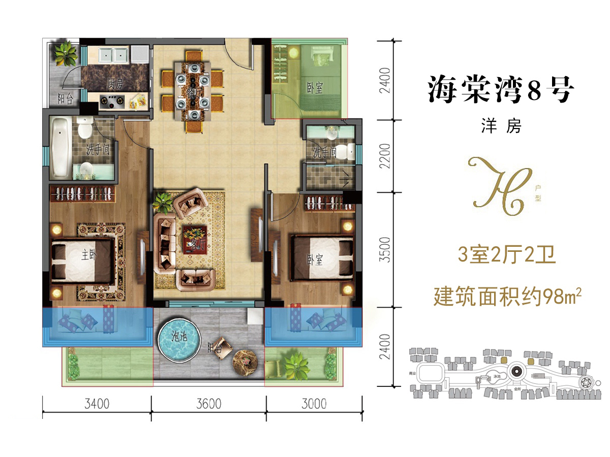 海棠湾8号温泉公馆均价为:33000元/平方米2022-06-07