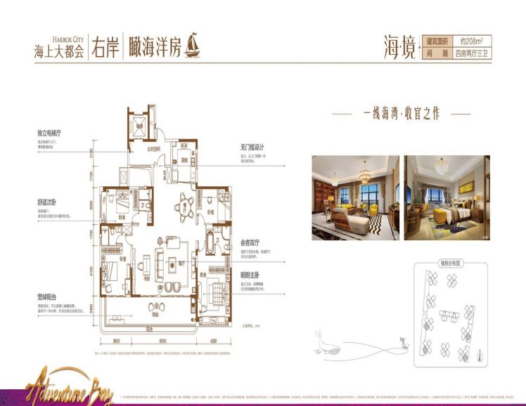 碧桂园·海上大都会右岸30000元/平方米起。项目规划建设1544户。主力户型为106平-208平3居-4居。碧桂园·海上大都会右岸楼盘地址:三亚市三亚湾路国光豪生酒店左侧滨海展厅。绿化率35%。碧桂园·海上大都会右岸公共部分带装修交房。商业广场,中央公园。自...