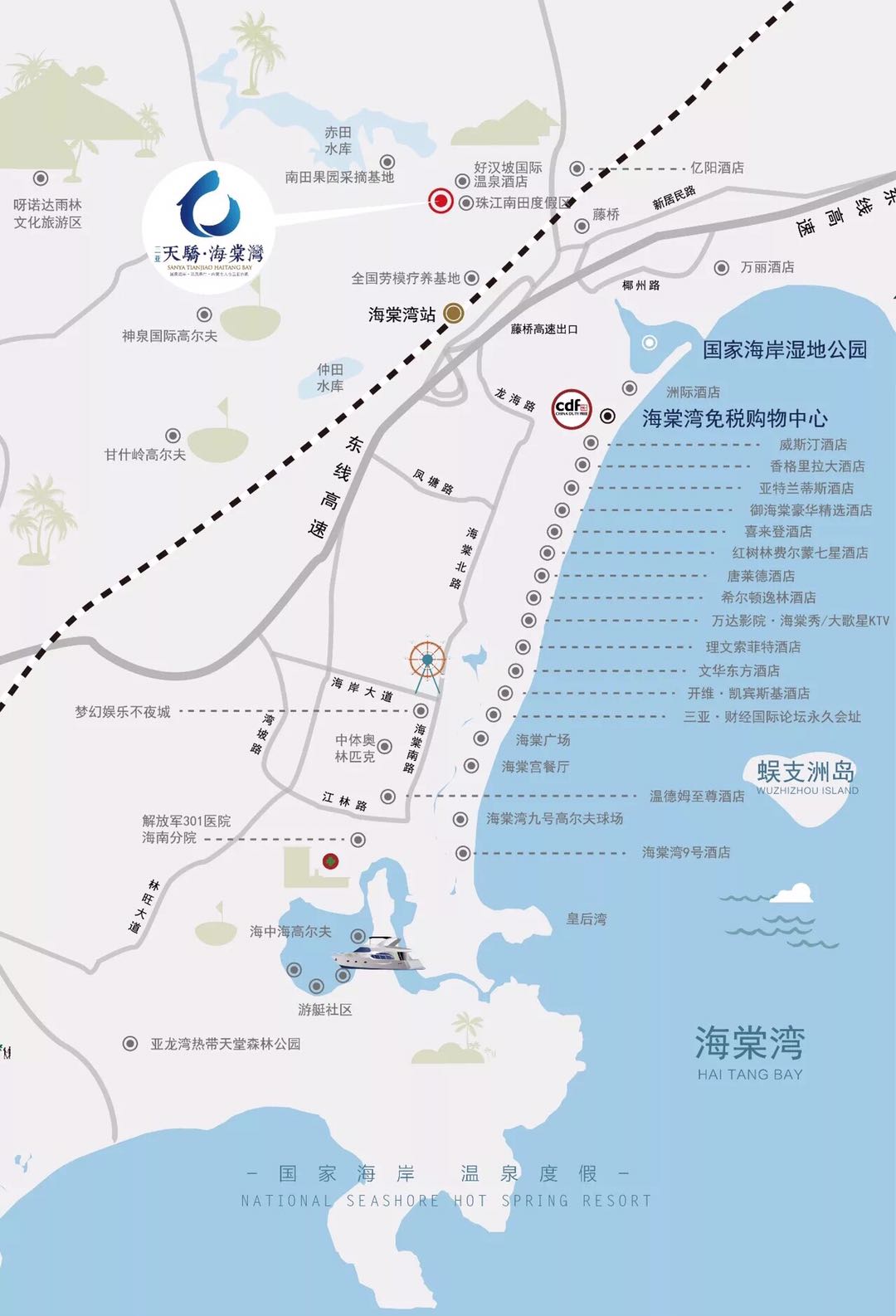 项目温泉入户,温泉水引自南田地下温泉水,距离市中心约35公里,距离凤凰机场约40公里,与蜈支洲岛隔海相望。参考价格:3.2万/m² !简装交付...