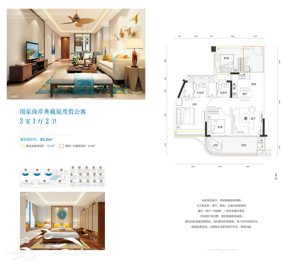 天骄海棠湾位于三亚南田温泉国际热带风情旅游城,引入“神州第一泉”南田温泉,打造真正的滨海温泉入户。65-162㎡2-5居户型在售!简装交付。...