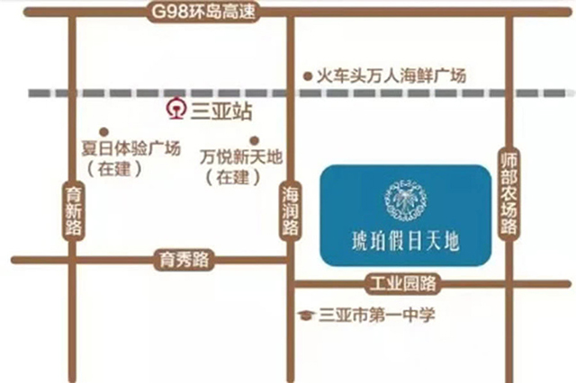 琥珀假日天地位处三亚城区天涯区,是由合肥城建、丰乐种业两大上市公司联袂开发打造,紧邻城市主干道凤凰路,周边交通体系比较完善。