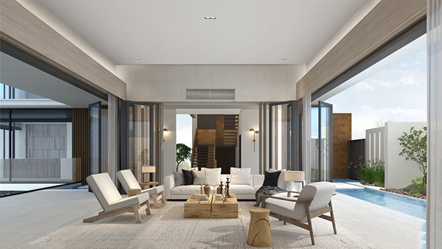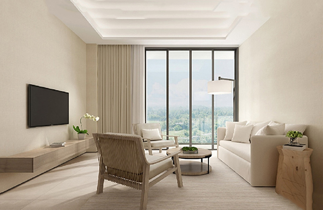 项目总占地约64亩,总建筑面积约43000㎡,容积率1,绿化率45%,由两栋小高层酒店和65栋低层酒店组成,项目度假酒店的建筑采用新亚洲风格,项目规划设计上,两栋小高层酒店分布于项目的南侧及西侧,低层酒店分布项目的东北侧,各空间之间互不烦扰,项目北向与东向无任何建筑,充分保证全开阔视野。
