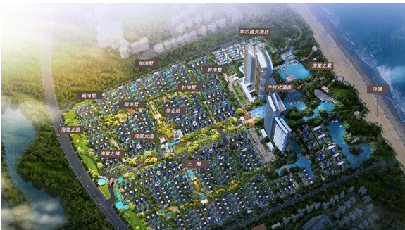 海棠华著项目占地面积为29.3万平米,容积率0.4,绿化率62.2%,地上建筑面积约12万平方米,一共分为三期开发,一期为174套别墅产品,打造三亚临海别墅群。