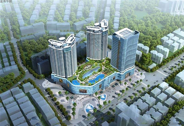 蓝海华庭项目是由海南伟龙旅业有限公司建设的大型城市综合体项目,用地建筑面积27295㎡,总建筑面积168948.01㎡,总12亿元人民币,是海南省重*点工程项目之*一;“蓝海华庭”项目由百货商业、写字楼、住宅组成的大型城市综合体,配套设施较为完善。项目一至四层裙楼建筑面积4.3万平方米是包含大型百货、餐饮、电影院、娱乐等各类业态分布齐全的商业,五层架空层是环境优美的空中花园、会所和设计独*特的游泳池,六层以上是由北面两栋26层高、建筑面积4.3万平方米的住宅楼和东南面一栋22层高,建筑面积2.5万平方米的写字楼组成,另外还建有建筑面积5.8万平方米的地下三层地下室,主要功能是超市、停车场及提供小区内的设备用房。小区停车位达到1180个,是目前三亚市中*心大型地下停车场之*一。